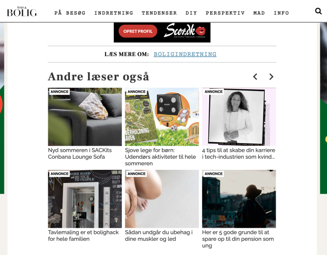 | Ads matcher organisk med webstedets udseende og indhold | Ads skiller sig ud fra det generelle indhold og udseende |