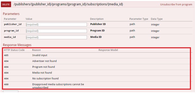 The Daisycon API uses the standard HTTP status codes. However, a response can have several reasons, please check out the resources for the specific error codes for your request.