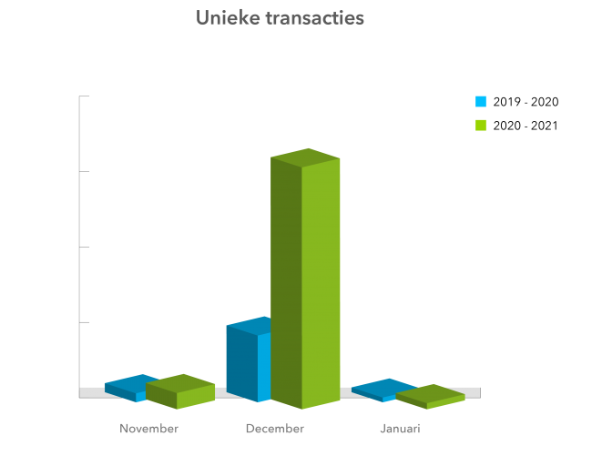 In onderstaande afbeeldingen zie je resultaten van zorgseizoen 2019/2020 en zorgseizoen 2020/2021 geïllustreerd op basis van het unieke aantal kliks en het unieke aantal transacties.